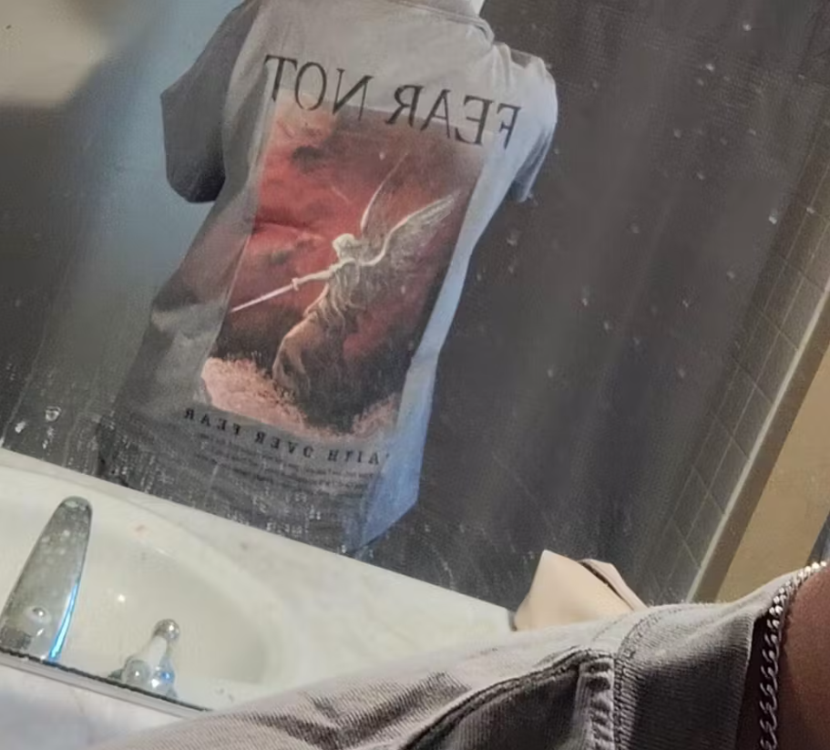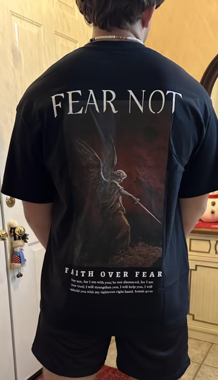 Bought this for my son. Both of us were very impressed with the quality and design of this shirt. It feels nice and looks fantastic! What a great message! He’s 6ft 200lbs and a large fit with some room.